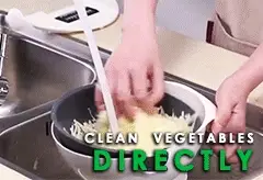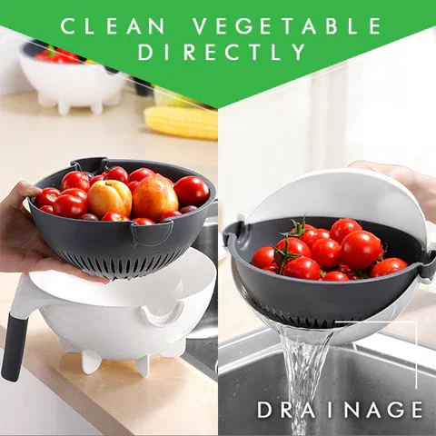 الوعاء به فتحات لتصريف الماء بسهولة وسرعة عند تنظيفه بعد تقطيع الخضروات والفواكه