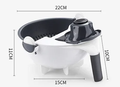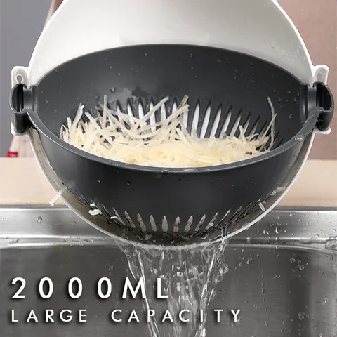 -وعاء سعة 2000 مل مع فتحات تصريف للتنظيف الفوري بعد تقطيع الخضار.